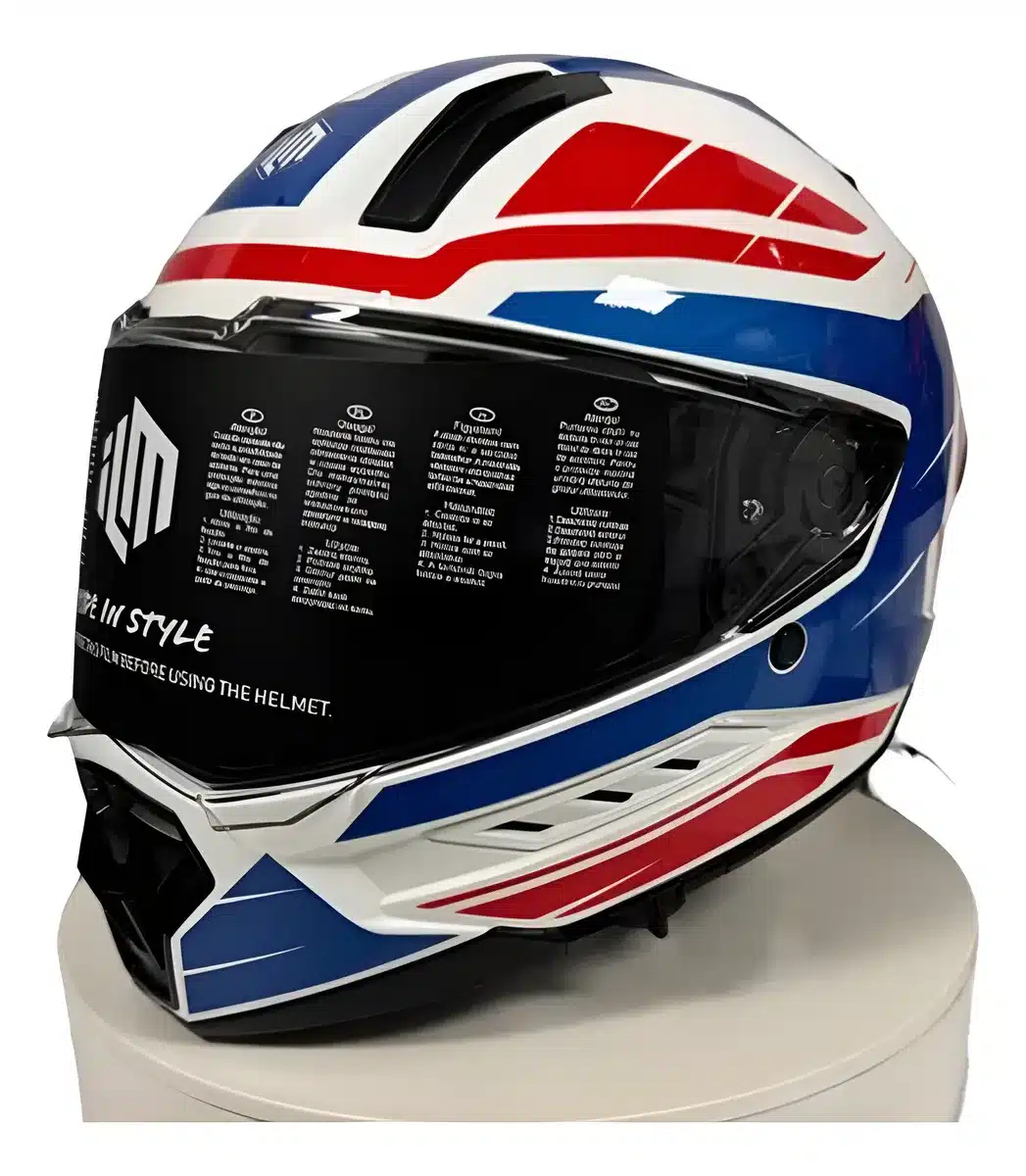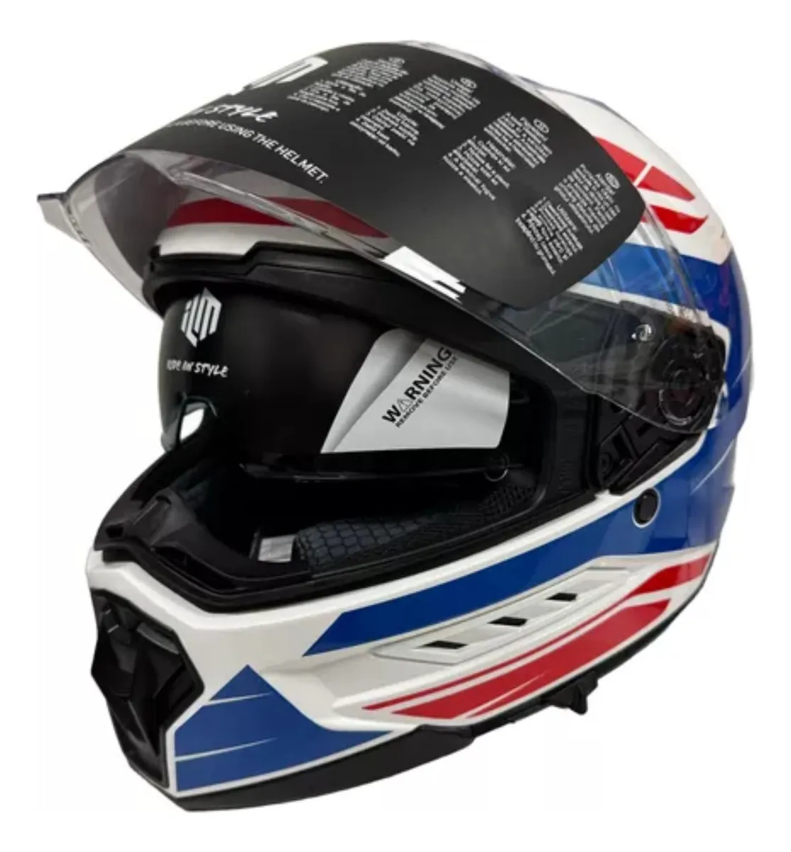 Casco Integral Moto Ilm Veloce Azul Rojo Y Blanco Con Gafas